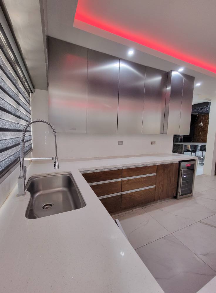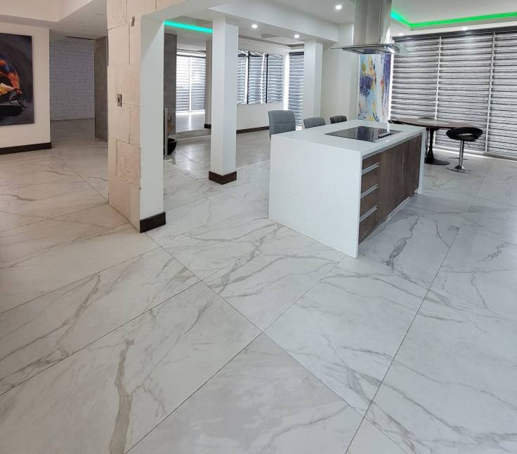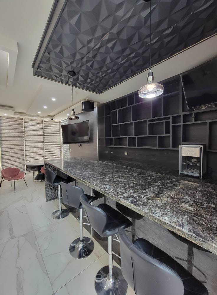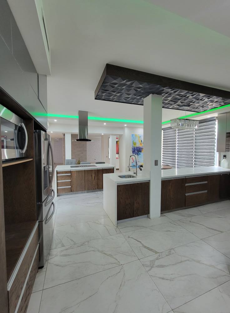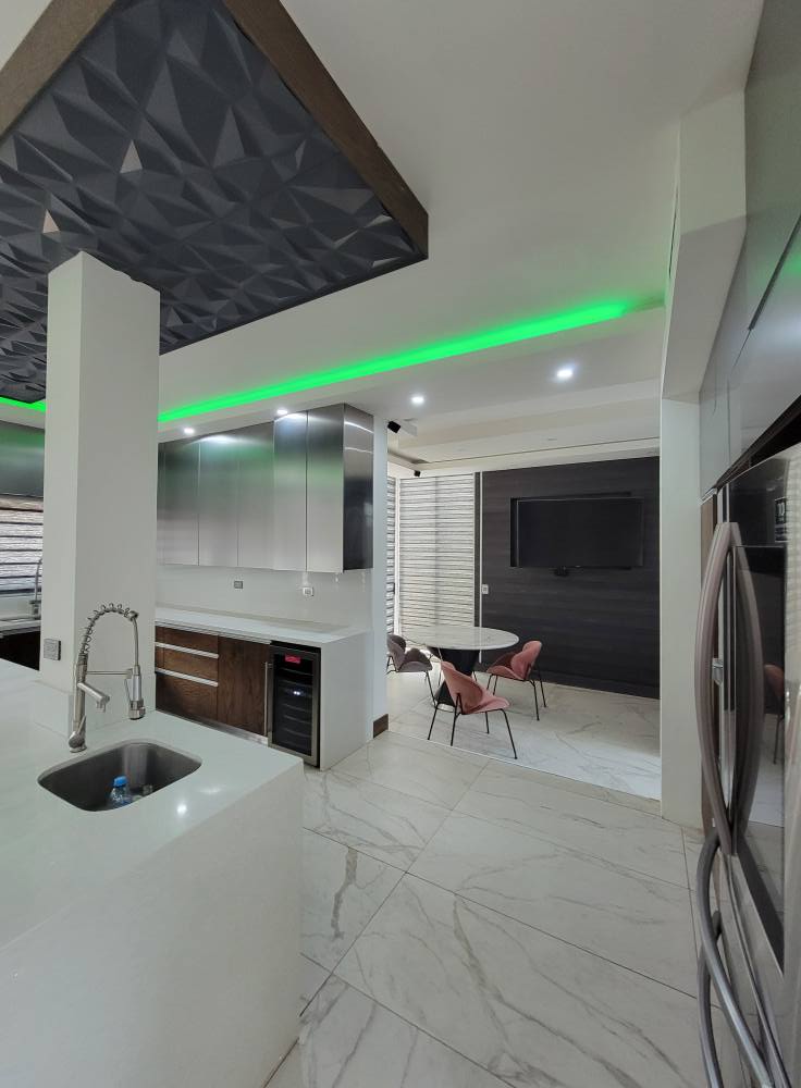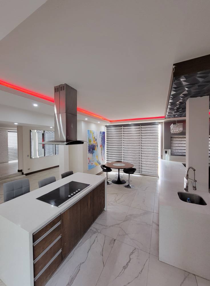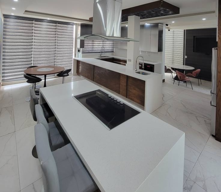 *Cocina de granito equipada acabados de lujo, sala ,comedor. Medio baño ,
